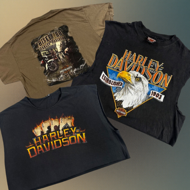 Everyone has their own style, and we love that. So if you ever want a shirt customized — cropped, cut, bleached, or finished with flames or lightning — we’re happy to help.